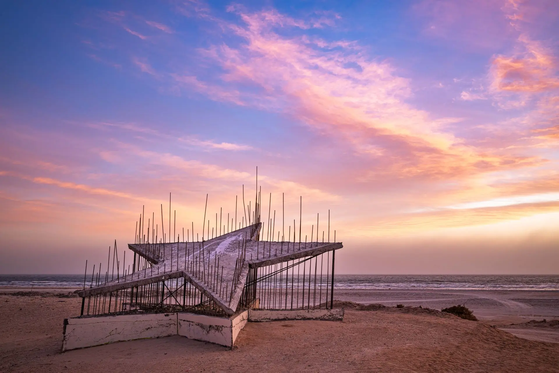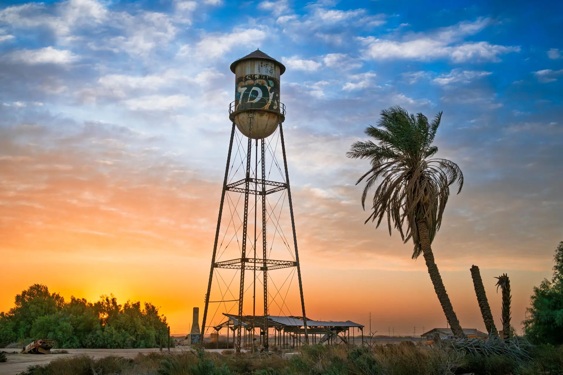 In the middle of nowhere, a rusted water tower rises like a relic from another time — weathered, worn, and yet unyielding. Framed by a violent wind and a calm desert sunrise, it tells a quiet story of endurance.